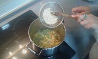 - Por último añadimos el agua y lo dejamos que hierva todo junto unos 10 minutos.